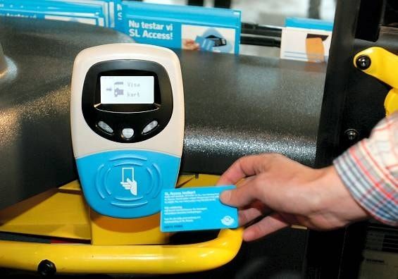 Для того, чтобы зайти внутрь автобуса воспользуйтесь передними дверьми и приложите купленную вами SL Access card (о том как и зачем их покупать ниже) к специальным голубым автоматам для считывания карт. Если вы приобрели билет с помощью специального приложения «SL-Reseplanerare och biljetter» — покажите ваш телефон водителю. Так же если у вас бумажный одноразовый билет, так же просто покажите его водителю автобуса.