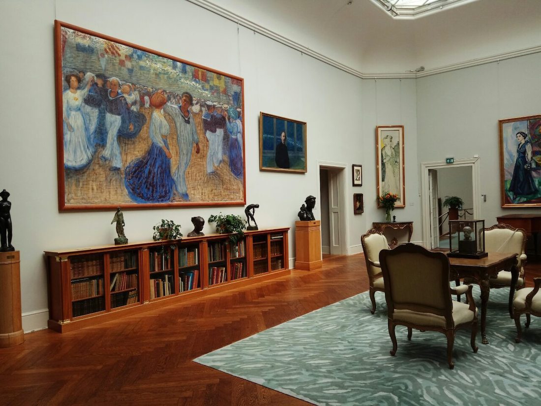 Тильская галерея. Она расположена в глубине острова и идти пешком сюда довольно далеко, но каждый шаг того стоит. Во-первых в галерее хранится большая коллекция работ Мунка: картины и гравюры. Во-вторых, здесь хранится посмертная маска Ницше, который был другом хозяина галереи, банкира Эрнеста Тиля. И в-третьих здесь можно познакомиться с самыми известными скандинавскими художниками - Эженом Янсона, Карла Ларсона, Бруно Лильефорса и других. В-четвертых - на первом этаже галереи выставляются работы любимого скульптора норвежцев скульптора Вигеланда, а во дворе стоит скульптура Родена "Тень".