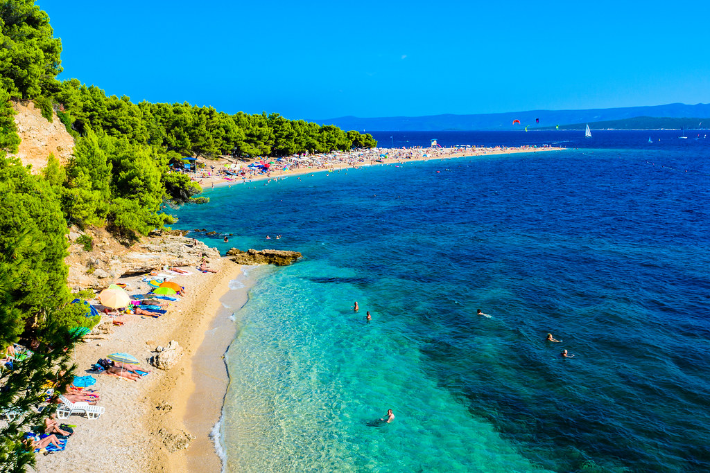 Самый известный песчаный пляж в Хорватии называется Златни Рат (Zlatni Rat). Это песчаная коса треугольной формы, расположенная на острове Брач. В основании треугольника растут сосновые леса, а края усыпаны золотистым песком. Добираться туда не так-то просто, но зрелище того стоит.