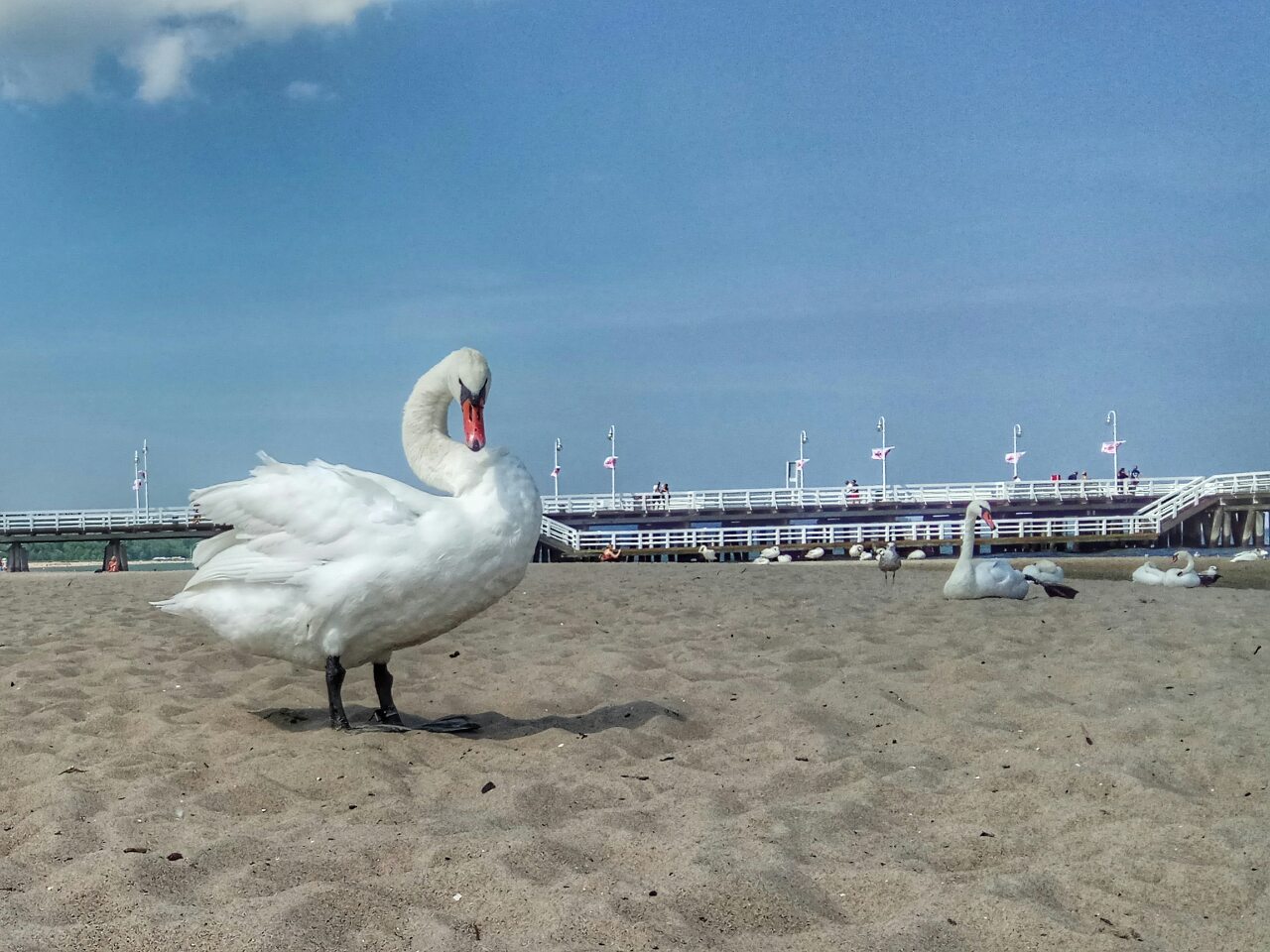 У пляжа Сопота есть приятный бонус — лебеди и утки, которые круглогодично живут здесь. Их можно кормить и трогать руками (хотя лучше не рисковать, конечно, лебеди не любят излишнего внимания — могут и ущипнуть). Лебеди флегматично ходят между отдыхающими и с удовольствием принимают угощение.