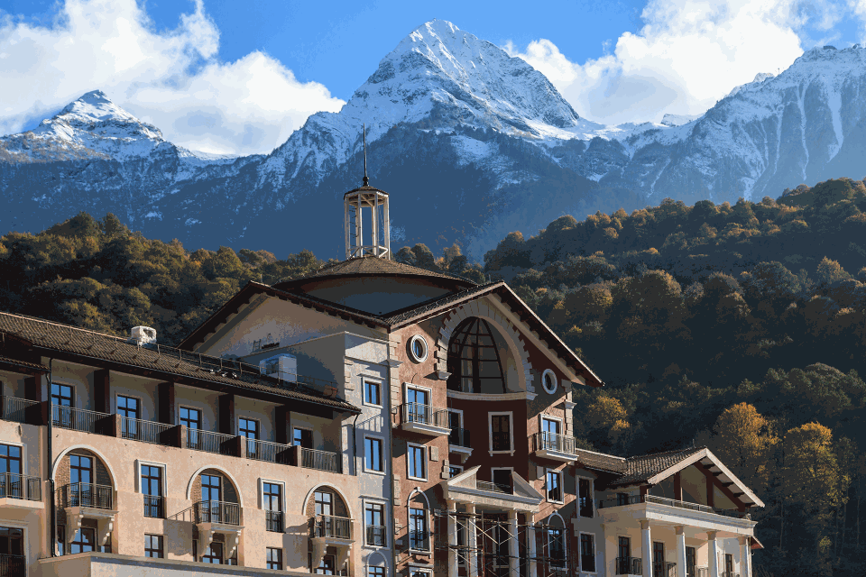 Еще один идеальный вариант в горах — пятизвездочный Rixos Krasnaya Polyana Sochi. К услугам гостей комфортные номера с панорамным видом на горные вершины, спа-центр, бассейн, детский развлекательный центр, а горнолыжный подъемник расположен в 100 м от отеля. С июня по сентябрь в отеле работает бесплатный трансфер, который доставит вас на частный пляж.