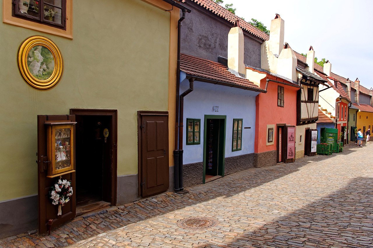Узкая прогулочная улица с милым нашему уху названием «Злата улочка» была построена в 16 веке и выполняла роль пристройки к оборонным сооружениям Пражского града. Здесь жил обслуживающий персонал, военные и даже была тюрьма. Несмотря на эти факты, свое название улочка приобрела из-за легенды о том, что раньше здесь жили алхимики, которые выплавляли золото и разливали эликсир вечной молодости. Времена менялись, в 17-18 веке район обеднел и стал криминальным, а вот к 19 столетию все круто изменилось и жить тут стало очень престижно. Сегодня здесь расположено около 30 домиков-экспонатов, где вы можете зайти внутрь, рассмотреть интерьеры, узнать как выглядел чешский быт несколько столетий назад, купить сувениры, чешскую косметику, книги и открытки.