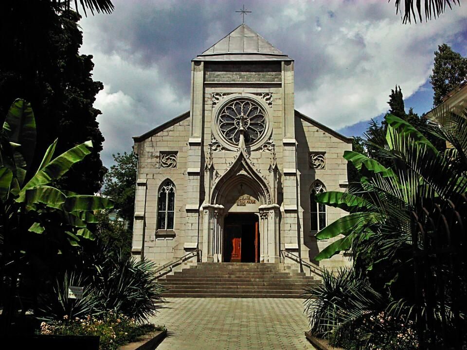 Первый пункт, не столь широко известный в кругах туристов — улица Пушкинская. Она начинается не доходя метров двадцать до гостиницы Ореанда и простирается до самого Спартака или Пушкинского рынка. Пушкинская улица очень тенистая, ухоженная, с красивыми газонами и пышными деревьями. Одной из главных достопримечательностей является Римско-католический храм непорочного зачатия Девы Марии (ул. Пушкинская, 25). В храме проходят мессы, а также концерты органной музыки. Территория храма усажена красивыми растениями, стоят лавочки, а местные любят просто прийти сюда и провести тихое время в тени пальм.