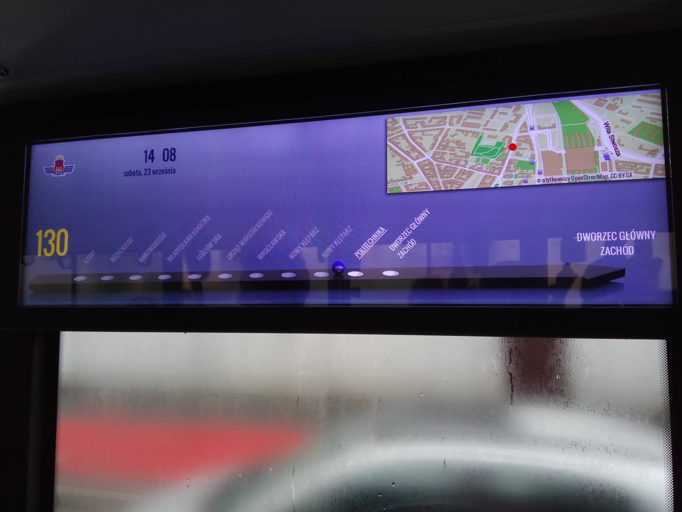 В некоторых автобусах работают информационные табло, на которых нарисована карта движения, с указанием маршрута, и точки, в которой вы находитесь в данный момент.