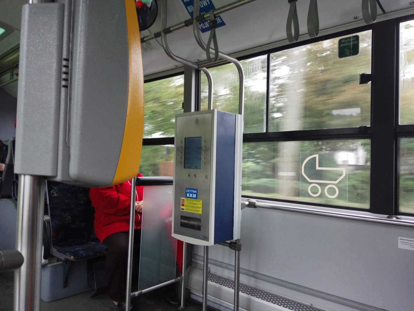 Для этого в транспорте стоят автоматы по продаже билетов. Чаще всего они принимают только мелочь от 10 грошей до 5 злотых, поэтому стоит иметь монетки всегда при себе (автоматы умеют выдавать сдачу). В некоторых автобусах старые автоматы стали менять на новые, которые принимают оплату банковскими картами, но пока они большая редкость.