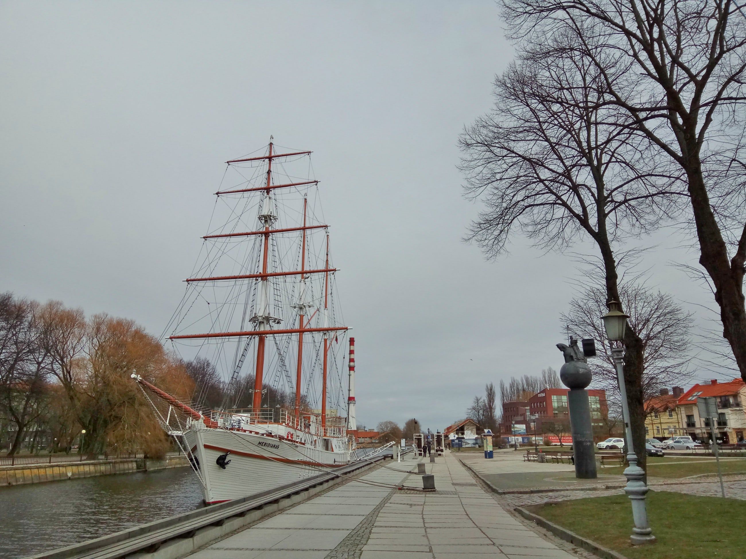 Буквально в ста метрах от моста пришвартован отреставрированный корабль с роскошными парусами. Раньше он бороздил морские просторы, сегодня же его используют в качестве ресторана. В ресторан заходить необязательно (к тому же он то открывается, то закрывается), но фото нужно сделать непременно. После чего необходимо оглядеться по сторонам, как следует рассмотреть старые и новые дома в традиционных немецких стилях, присесть на лавочку и понять, что вы находитесь в прекрасном месте.