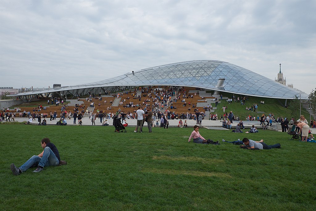 Парк открыт не так давно и за короткий срок стал одной из самых ярких достопримечательностей Москвы. Это абсолютно новый вид общественного пространства, где создан уникальный микроклимат (здесь буквально особая температура, ветер и ландшафт, например весь парк разделен на 4 зоны, которые соответствуют степи, лесу, тундре и болоту), ледяная пещера, которая воссоздает атмосферу Крайнего Севера, просветительский центр «Заповедное посольство», где регулярно проходят образовательные мероприятия, «Парящий мост», возведенный над Москвой-рекой и задуманный как лучшая смотровая площадка Москвы, сад уникальных растений, филармония, гастрономический павильон, музей Москвы и многое другое.