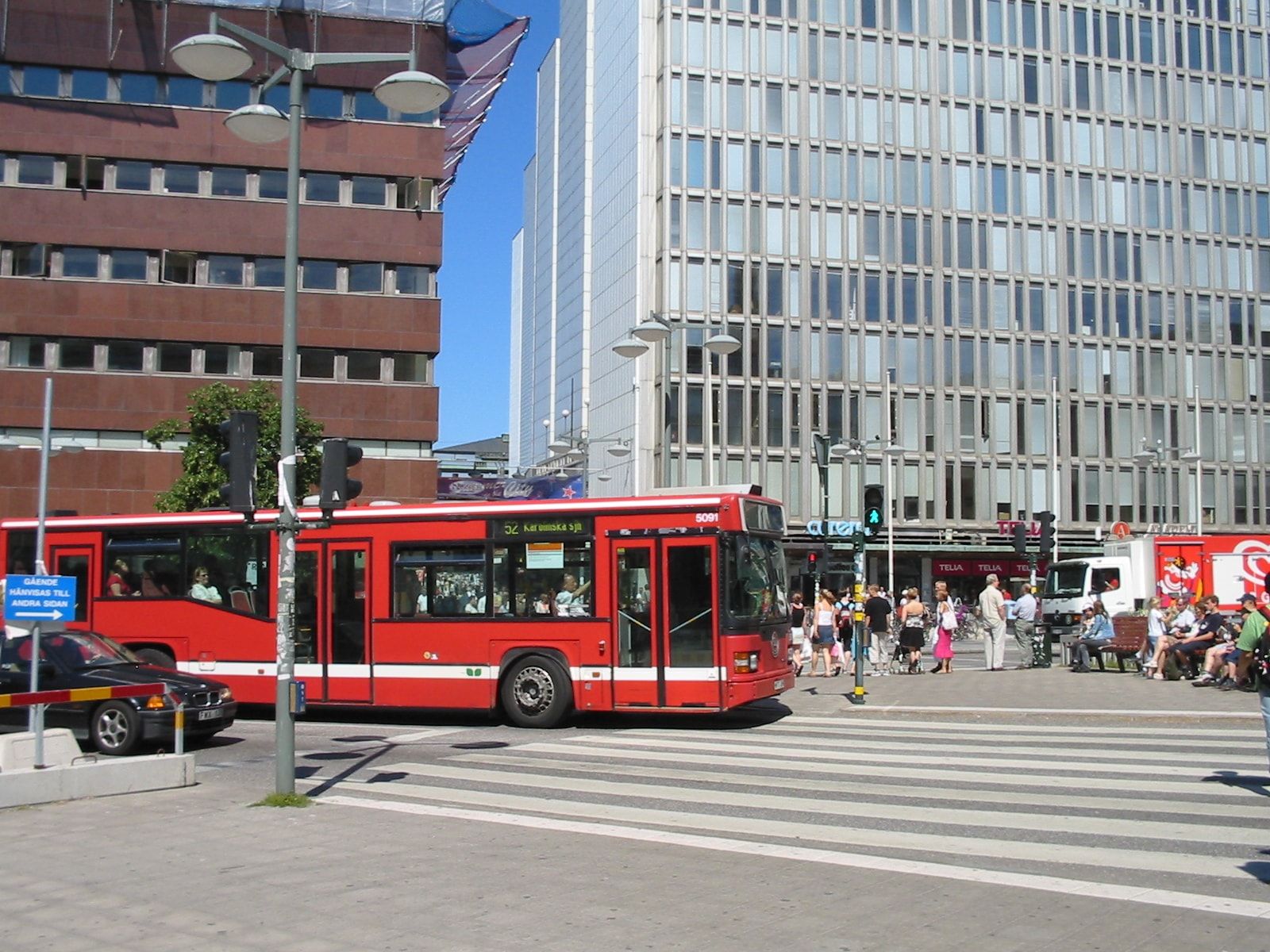 Автобусы являются, наверное, самым популярным транспортом в Стокгольме. Автобусы бывают красными и синими.