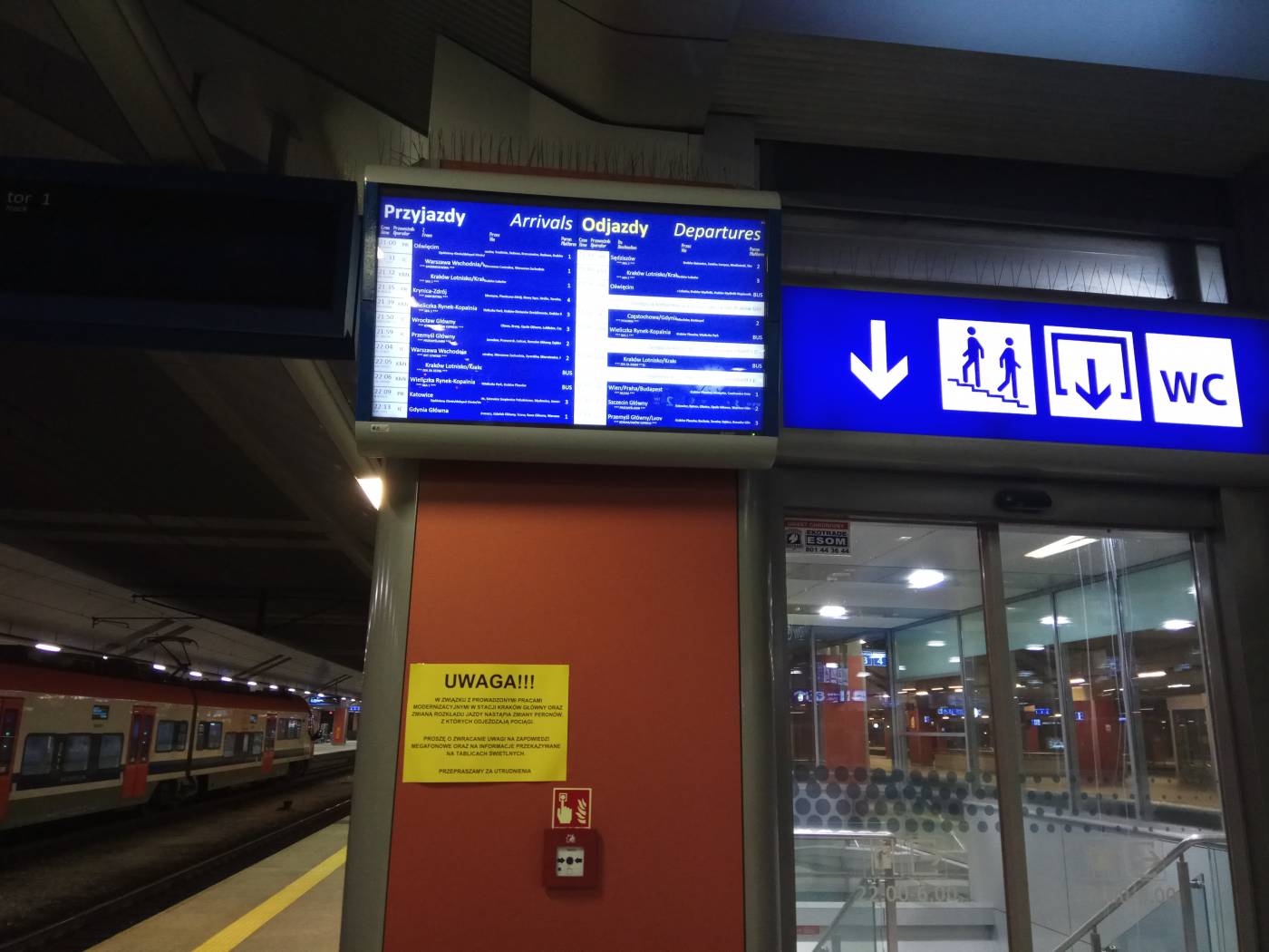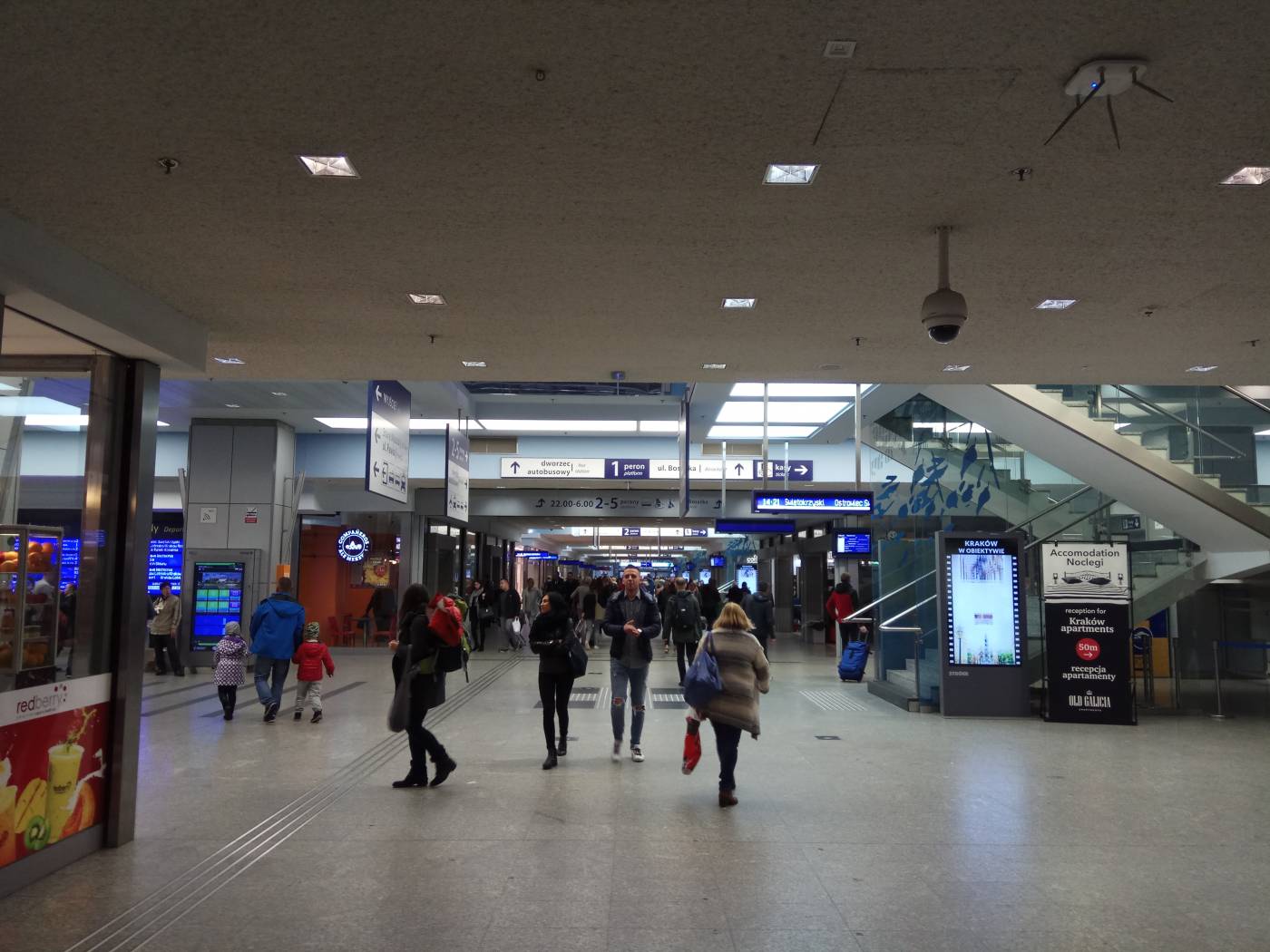Если вы на вокзале, то ознакомьтесь с расписанием, чтобы узнать с какого перона и пути отправляется ваш рейс, и следуйте на нужный перон. В Кракове центральный железнодорожный вокзал «Kraków Główny» совмещен с автобусным, и находится прямо за самым крупным краковским торговым центром «Galeria Krakowska».