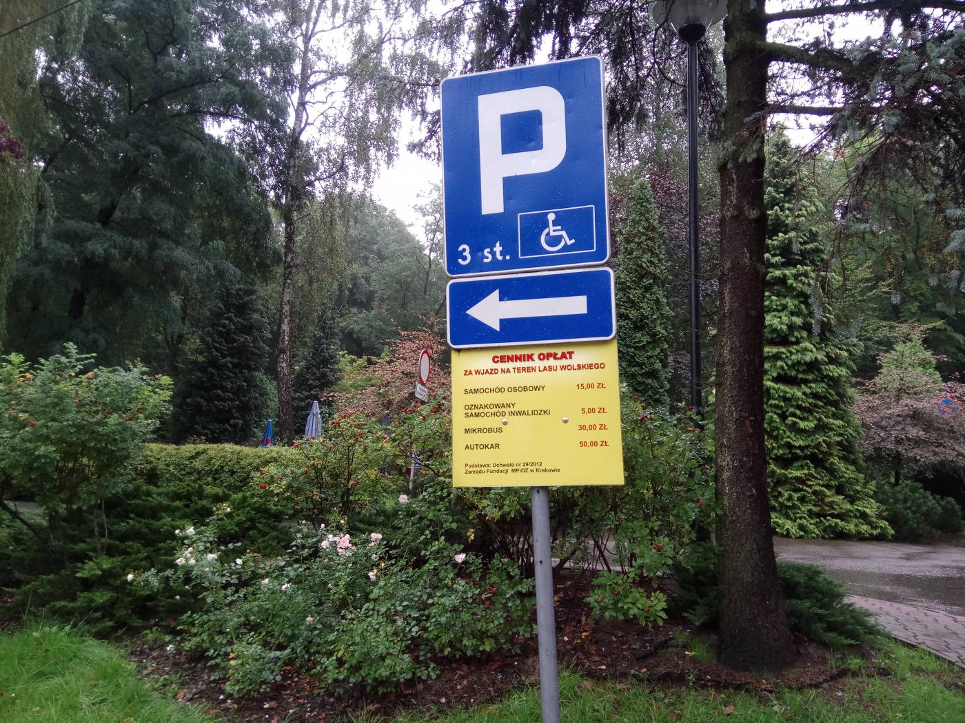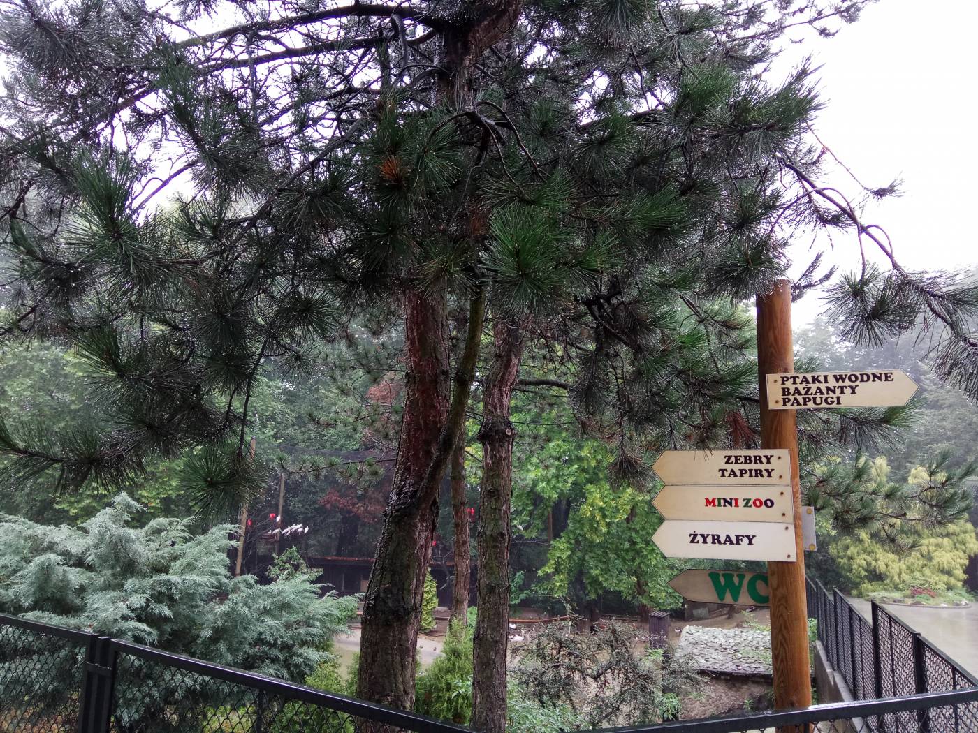 Мы добрались до зоопарка. Как я упомянул выше, зоопарк находится на возвышенности, и к нему ведет одна узкая дорога. Перед входом в зоопарк расположена платная парковка. Цена за легковой автомобиль — 15 злотых за день (примерно 3.5 евро). Поставить машину вне парковки не получится — везде запрещающие знаки, только если где-нибудь в селе у подножия холма, но тогда придется к зоопарку идти пешком вверх по крутому подъему. Но 3.5 евро не такая большая цена, поэтому оставляем машину на платной парковке.