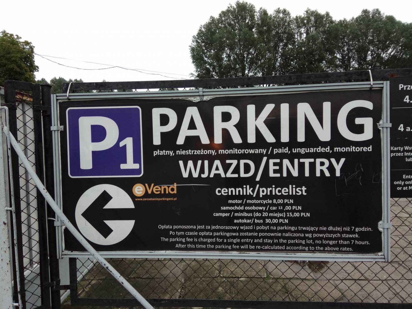 Если вы приехали на своем авто, то прямо у центрального входа в музей находится большой платный паркинг. Стоимость парковки легкового авто — 13 злотых (примерно 3 евро), мотоцикла — 8 злотых (чуть меньше двух евро). Но если хотите сэкономить, то буквально в паре сотен метров напротив главного въезда во дворах много места, где можно поставить авто бесплатно.