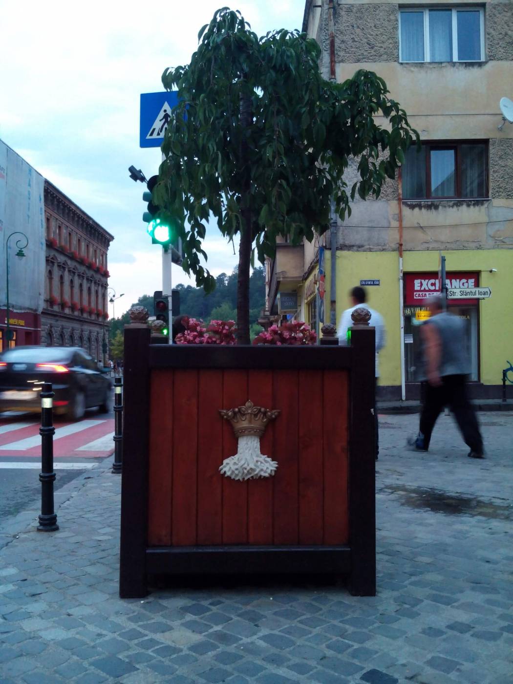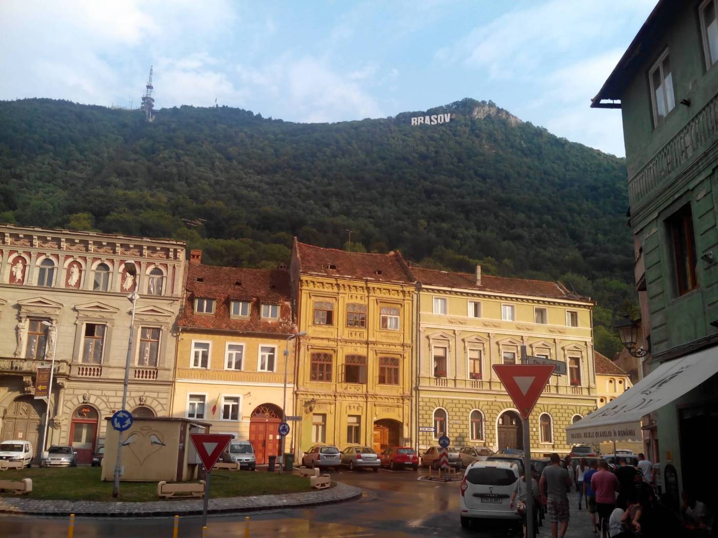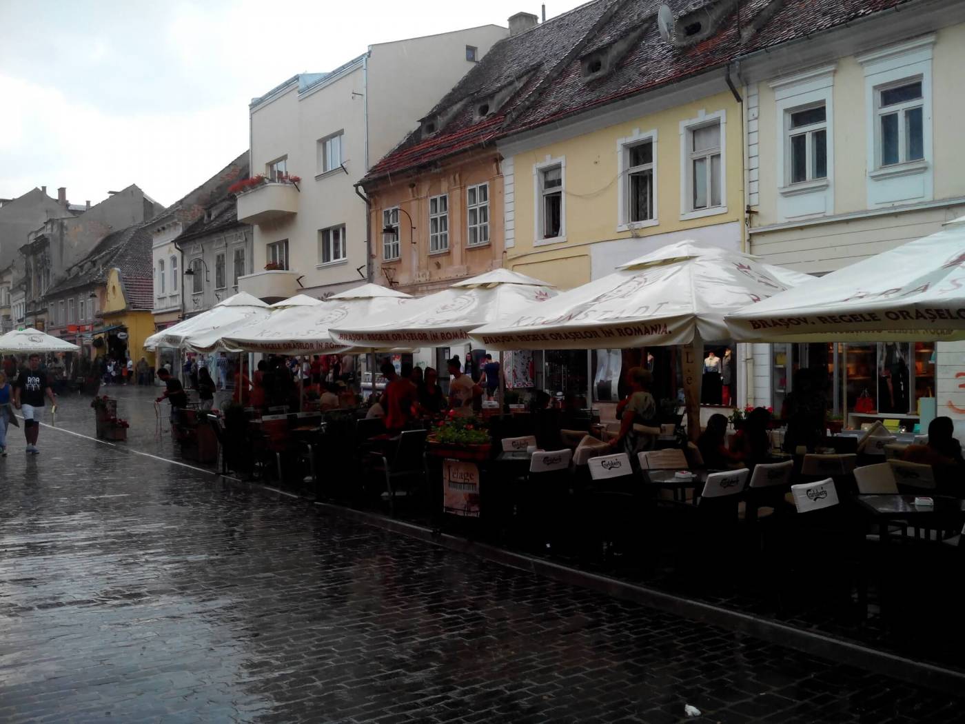 Но если обратить внимание на зонтики в различных кафе, то они не рекламируют торговую марку какого-нибудь пива, а выполнены в едином стиле, с логотипом и названием города (Брашов какое-то время носил имя Кронштадт).