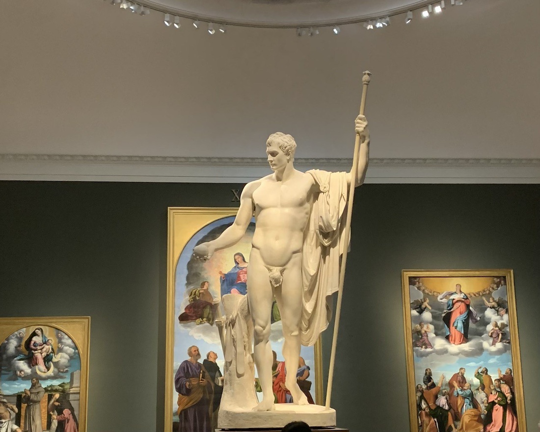Пинакотека ди Брера. Прогулка стартовала с художественной галереи Pinacoteca di Brera. Шикарные залы, полные произведений Браманте, Рафаэля, Караваджо и других итальянских мастеров. История началась с икон 13 века и закончилась грандиозной статуей Наполеона, которую он лично заказал у скульптора Антонио Кановы. Конечно же мы видим не сутулого Наполеона с залысинами, каким он обычно предстает на картинках в Википедии, а такого прямо Зевса Громовержца. Если бы Наполеон был нашим современником, без фильтров в эфир точно не выходил бы. Короче галерея отличная, но на мой вкус сюжеты картин были довольно однообразны, в основном либо библейские, либо портреты, ни то, ни другое не мой любимый жанр.