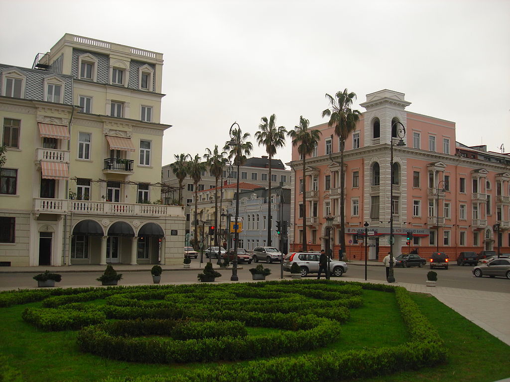 На берегу синего-синего моря стоит город с многокилометровыми пляжами, старинными церквями и красивыми домами. Этот город охраняют горы, покрытые изумрудной зеленью. В нем пахнет хачапури и шашлыком, а из окон домов доносятся тосты и песни.