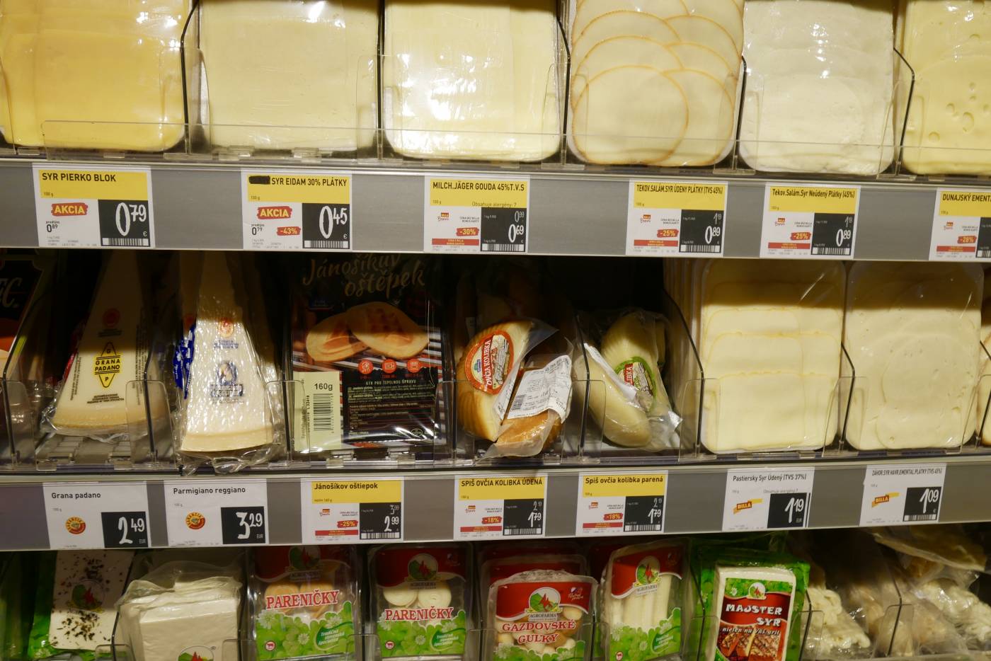 В целом цены в словацких супермаркетах выше, чем в наших магазинах где-то на 10-20%. Овощи и фрукты стоят примерно так же, возможно немного дороже, а вот молочные продукты и хлебо-булочные изделия дороже, мясо и курица гораздо дороже.