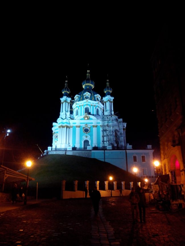 Жемчужина барокко - Андреевская церковь - встречает посетителей Андреевского спуска в Киеве. Церковь заложена на месте Андреевского бастиона Старокиевской крепости в 1744 г. к приезду Елизаветы I в Киев. По легенде, Св. Андрей Первозванный воздвиг на этом месте крест и предрек возникновение "вечного города". Вероятно, это единственная сохранившаяся в Украине работа арх. В. Растрелли. Богатое внутреннее убранство близко к стилю рококо. С балюстрады церкви открывается живописная панорама Подола. В Андреевской церкви проводятся богослужения УАПЦ - ежедневные утренние литургии, вечерние богослужения, освящение воды, крещения, венчания, другие таинства и духовные обряды. В ночь с субботы на воскресенье проводится всенощная служба.