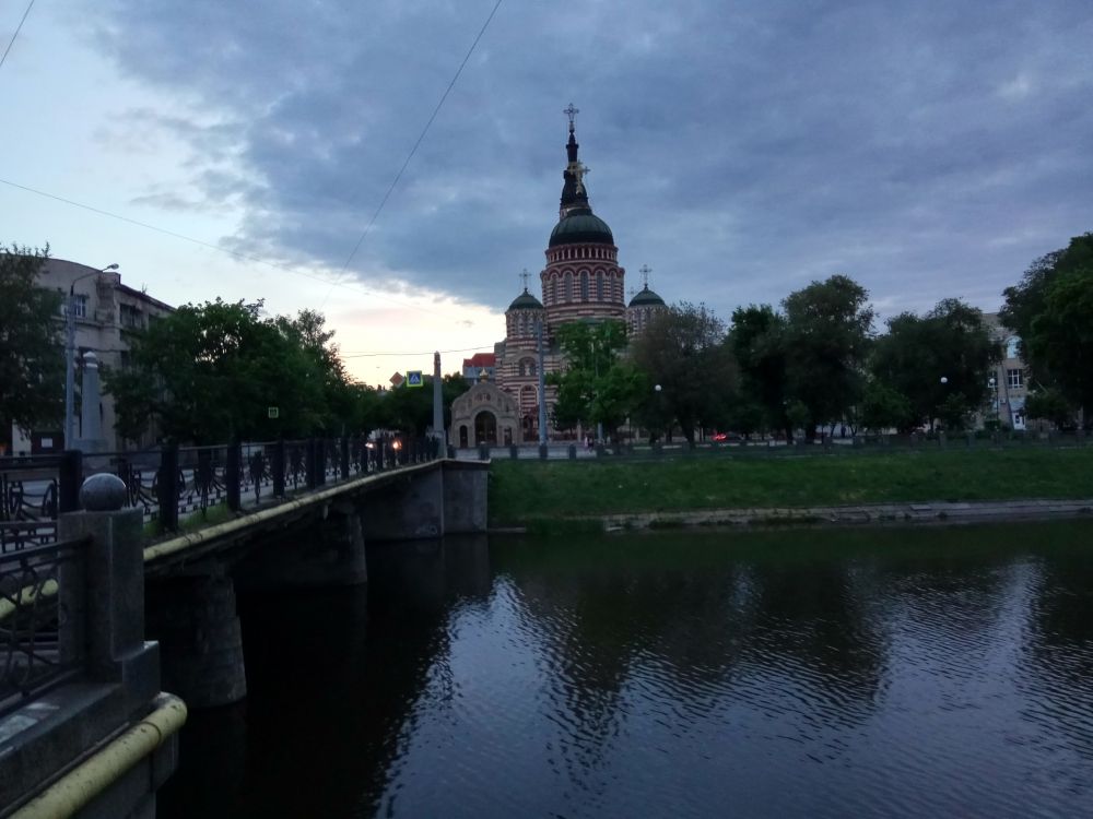 Грандиозный архитектурный ансамбль в ново-византийском стиле с 75-метровой колокольней возвышается над р. Лопань. Собор Благовещения Пресвятой Богородицы построен в 1901 г. на месте старого Благовещенского храма, история которого начинается с 1655 г. Тогда в поселении Залопань на окраине Харькове была построена деревянная церковь, которую затем заменили каменной, но и она вскоре перестала вмещать прихожан. В 1888 г. рядом началось строительство нового собора, средства на который собирала местная знать, купцы и простые прихожане. Зодчим избрали профессора архитектуры М. Ловцова. Пятиглавый храм с высокой колокольней отличается особой "полосатой" кладкой и богатством декора. Иконостас работы московского мастера В. Орлова был сделан из белого наррского мрамора, росписи выполнены местными художниками. Собор был закрыт большевиками в 1930 г., но снова стал действующим в годы Второй мировой войны. По легенде, с купола храма из-за ураганов и пожара трижды падал крест.