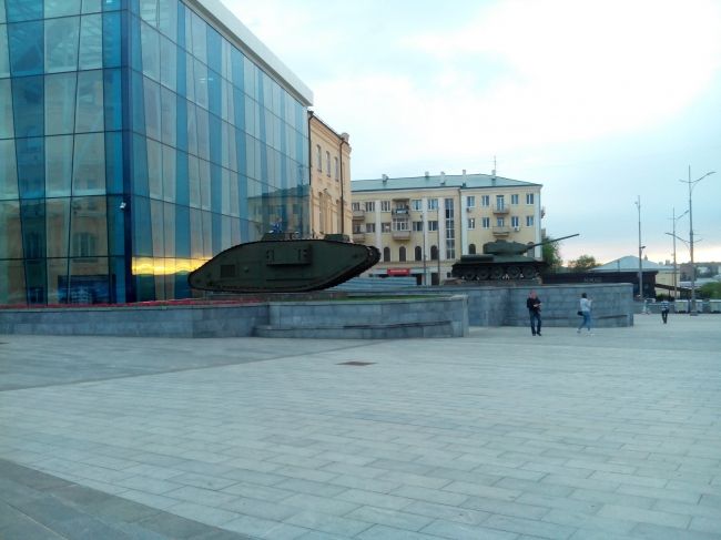 Харьковский исторический музей основан в 1920 г. как Музей Слободской Украины им. Г. Сковороды. Расположен в здании бывшего ломбарда из красного кирпича, построенном в 1908 г. по проекту арх. Б. Корниенко. В четырех отделах собраны археологические находки из раскопок поселений бронзового века, комплект вещей древнерусского периода из Донецкого городища XІ-XІІ в., нумизматические коллекции, этнографические собрания, коллекции оружия, флагов и т.д. На открытой площадке выставлены танки Mark V (английский времен Первой мировой) и Т-34 (советский времен Второй мировой). В 2012 г. в ходе реконструкции пл. Конституции к зданию музея был пристроен стеклянный павильон-галерея, а само здание выкрашено в желтый цвет.