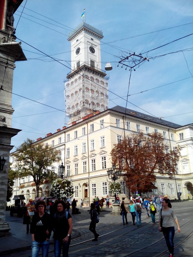 Доминанта площади Рынок, один из самых узнаваемых символов Львова. Главный вход в здание стерегут два символических льва, держащие щиты с гербом города. Первое деревянное здание ратуши было сооружено в 1381 г., впоследствии неоднократно перестраивалось. В средневековье перед ним стоял столб наказания (в 1564 г. здесь казнен молдавский господарь Томша, в 1578 г. - предводитель казацкого восстания И. Подкова). В нынешних классических формах здание отстроено в нач. XIX в. (арх. Ю. Маркль, Ф. Трешер, А. Вондрашек). С 1939 г. здесь размещается Львовский городской совет. Проводятся экскурсии по зданию с посещением 65-метровой часовой башни. С обзорной площадки на башне ратуши (подъем в 408 ступеней) открывается одна из лучших панорам города. Здесь же можно ознакомиться с механизмом часов, выполненных в 1852 г. на фабрике В. Штиля под Веной. В последнее время возобновлена старинная традиция - ежедневно в полдень с башни ратуши исполняется мелодия гимна города. В выходные дни трубач трубит каждые два чача с 9 утра до 9 вечера.