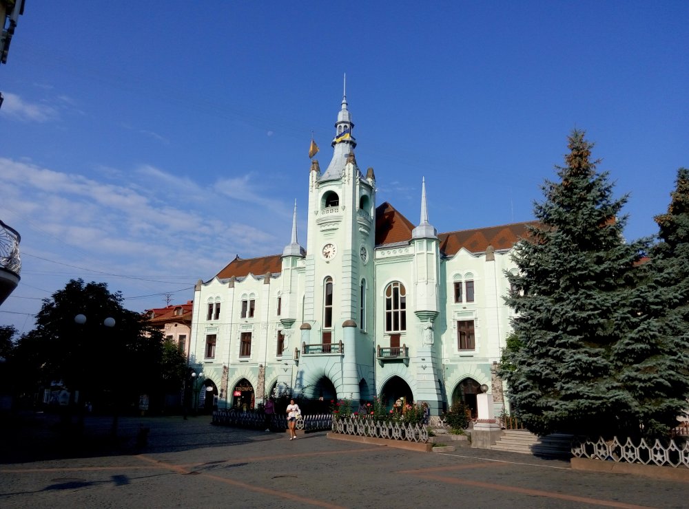 Здание городской ратуши уже более 100 лет служит по прямому назначению - сейчас здесь размещается горсовет. Построено по проекту будапештского арх. Я. Бабулы-младшего. При закладке первого камня в фундамент главной часовой башни поместили письмо, в котором, в частности, сообщалось, что в городе проживало 14416 чел., имелось 1553 дома. Главный портал украшают куранты, установленные мастером И. Шовинским. Главный механизм размещён в небольшой овальной комнате башни. В ёмком стеклянном ящике работает система шестерен и рычагов, соединённых тросами с двумя колоколами под крышей купола. Через каждые 15 мин. по меньшему колоколу ударяет молот, отбивая четверти часа. Удары по большому колоколу извещают о часах. Таким образом, в пределах слышимости колоколов время можно было определять на слух.