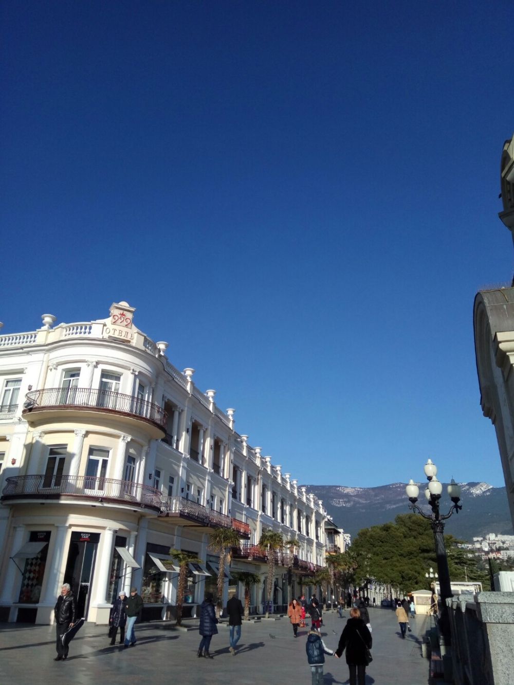 "Ялтинский променад", километровая пешеходная улица, протянувшаяся вдоль берега от Морвокзала до сквера им. Калинина. Здесь расположены самые дорогие рестораны, гостиницы и развлекательные комплексы. Гостиница "Россия" (1875 г., д. №13) была в своё время самой фешенебельной в городе (сейчас гост. "Таврида"). Сейчас таковой является гостиница "Ореанда" (д. №35/2), при которой работает кинотеатр "Кинопалац".