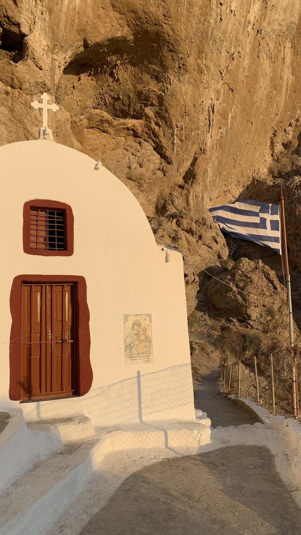Название «Катефиани» связано с греческим словом, означающим «убежище». В прошлом местные жители действительно прятались здесь во время пиратских нападений. Часовня считается старинной, построенной, вероятно, в XVI–XVII веках. Внутри довольно скромно, но есть иконы и небольшой алтарь. За ним находится пещера, где, по преданию, есть источник с целебной водой.